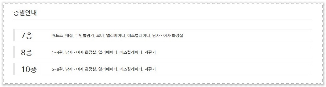 일반 좌석에 비하여 의자와 공간이 넓기 때문에 영화를 주로 보는 사람들에게 많은 사랑을 받고 있습니다.