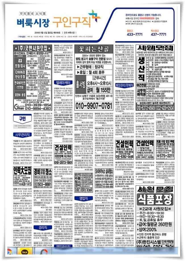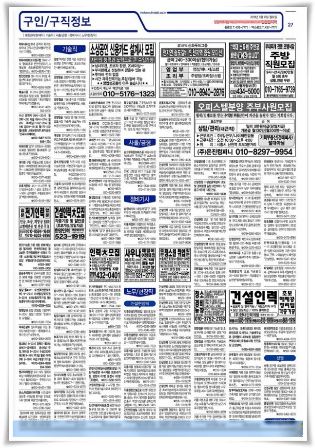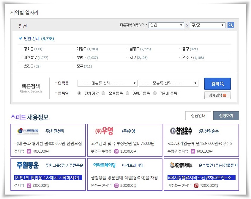 주부를 대상으로 한 취업정보, 그 외 아르바이트 정보, 인천 지역 특성상 운송 및 물류업 관련 채용소식도 많이 보이고 있습니다.