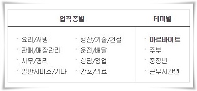 이뿐만 아니라 벼룩시장은 업 직종별 채용정보와 테마별 채용정보도 제공하고 있습니다. 일자리 찾기가 하늘의 별따기인 요즘 이렇게 자세하게 나와있어서 중장년층도 쉽게 일자리를 구할 수가 있습니다.