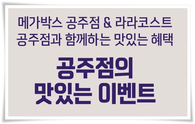 라라코스트 공주점 이용객들은 영화관 이용 시 매점콤보 2,000원 할인 쿠폰을 증정한다고 하니 참고하시기 바랍니다.
