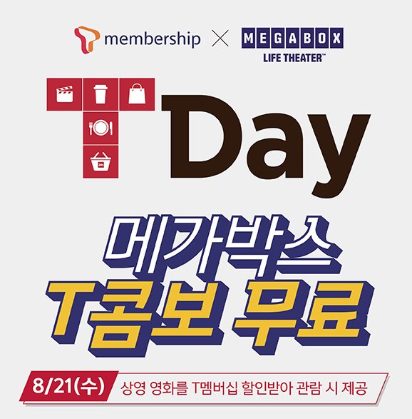 한 가지 더 소개해 드리자면 8월 21일 T day T콤보 무료이벤트를 진행하고 있습니다.