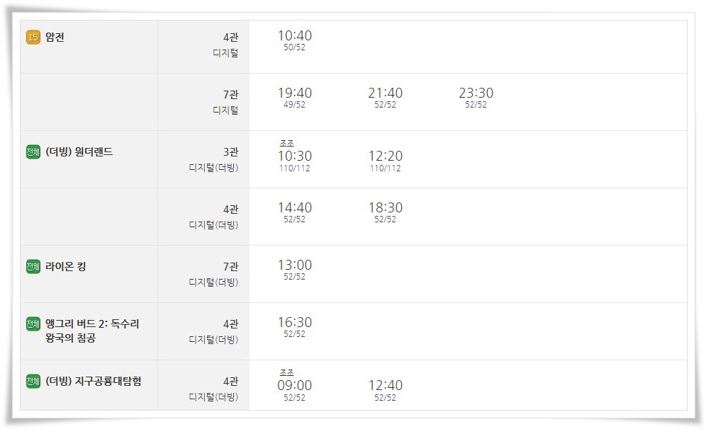 주차요금의 경우 영화 관람객에게 무료주차를 제공하고 있다는 점 참고하시기 바랍니다.
