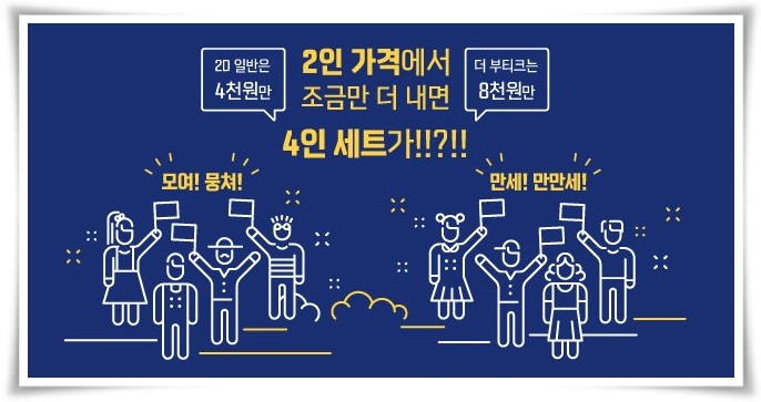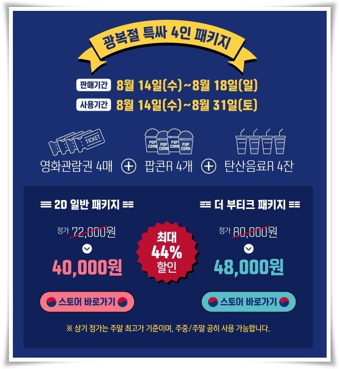 영화관람권 4매 + 팝곤R 4개 + 탄산음료 4잔 이 모든 게 4만 원이라는 가격에 판매한다고 합니다.