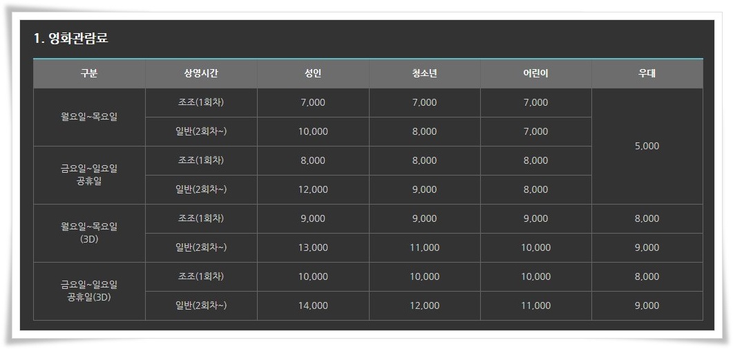 하지만 영화관마다 거리들이 있어서 가까운 영화관을 이용하시는게 좋습니다.