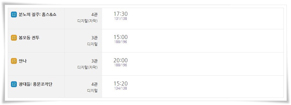 어느 영화도 놓칠 수 없는 만큼 재미있는 영화들이 많이 있는 것 같습니다. 영화 예매하실 분들은 매일 상영시간표가 바뀌니 홈페이지에서 확인 후 예매하시길 바랍니다.