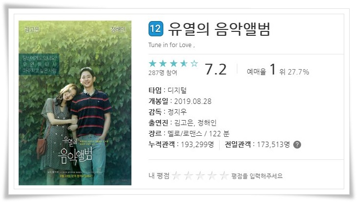 김고은, 정해인 주연의 영화인데요. 멜로/로맨스 영화로 젊은 사람들에게 많은 사랑을 받고 있다고 합니다.