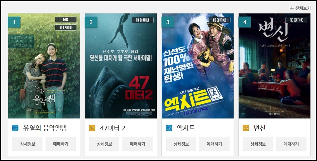 최근 개봉한 작품들이 역시나 많은 인기를 얻고 있습니다.