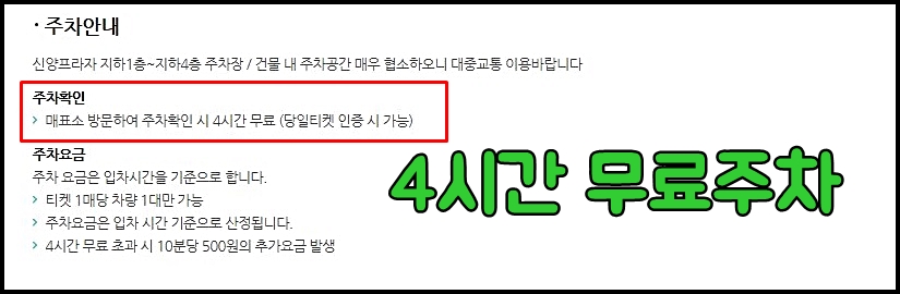 안산 메가박스 주차장은 신양프라자 지하 1층부터 지하 4층까지 주차가 가능합니다. 주차요금의 경우 당일 영화 관람객에게는 4시간의 무료주차를 제공하고 있어서 영화를 본 후 식사를 하고도 남을 시간이라 많은 사람들이 이용하고 있습니다.