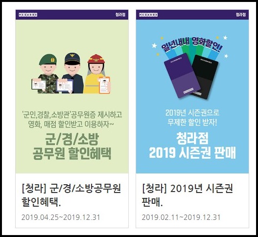 청라 메가박스 홈페이지에 들어가면 메가박스 할인혜택이 소개되고 있습니다. 군/경/소방 공무원들에게 할인을 해드리고 있다고 하니 국민들을 위해 고생하시는 만큼 영화도 보시고 편하게 힐링도 하면 좋을 것 같습니다.
