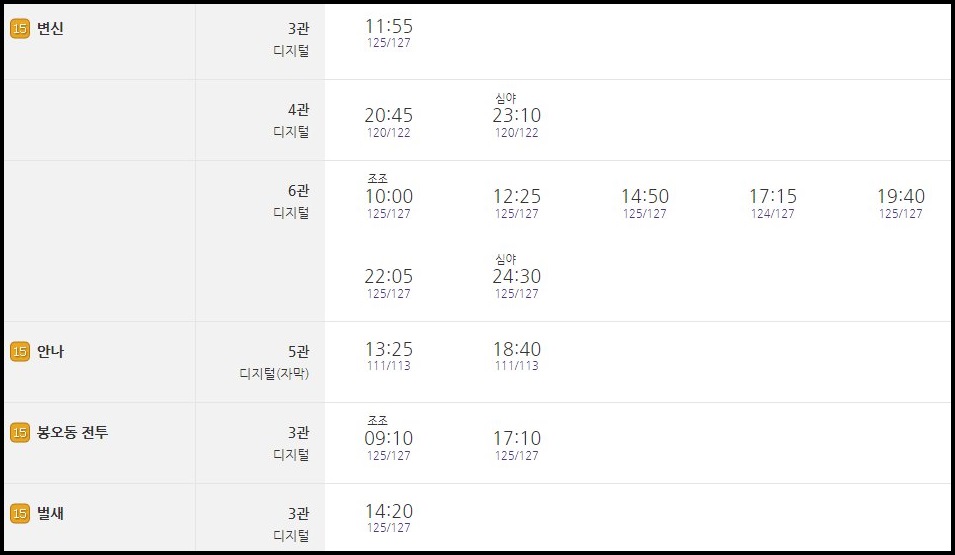 청라 메가박스 상영시간표 |