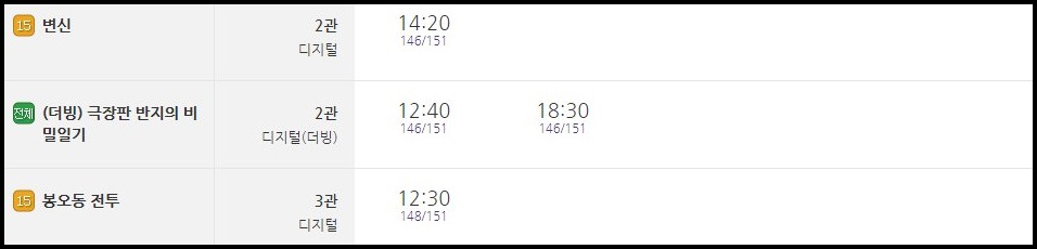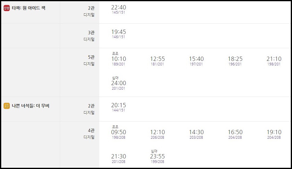 현재 상영작들은 다음과 같습니다.
