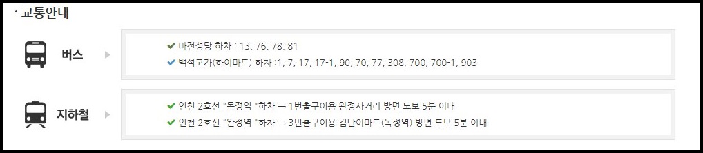 대중교통의 경우 13, 76, 78, 81 번등 다양한 노선이 운행되고 있어 참고하시면 좋습니다.