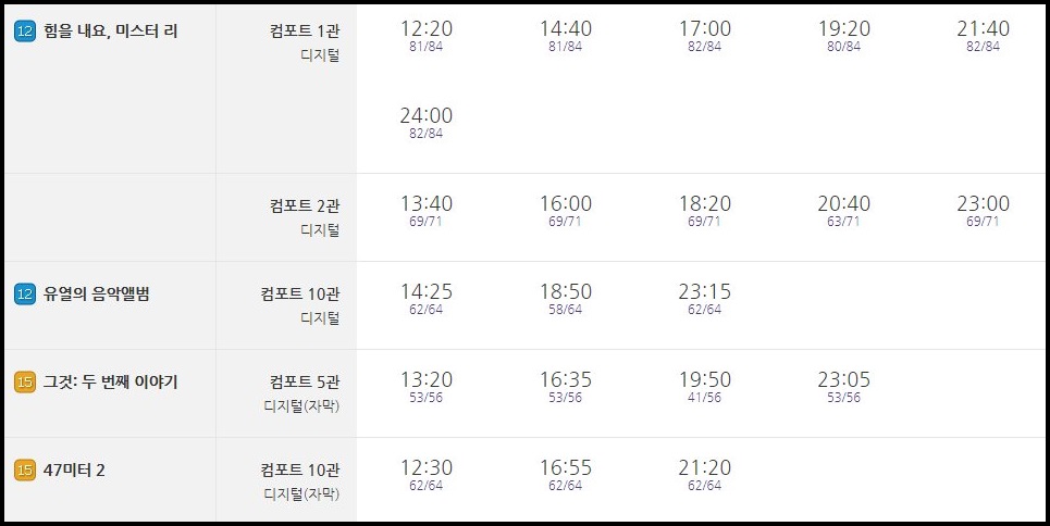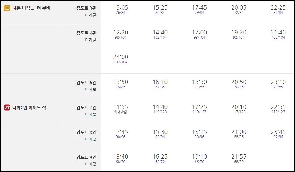 오늘 하루 총 16번의 상영이 예정된 것을 보면 가장 핫한 영화가 아닐까 생각합니다.