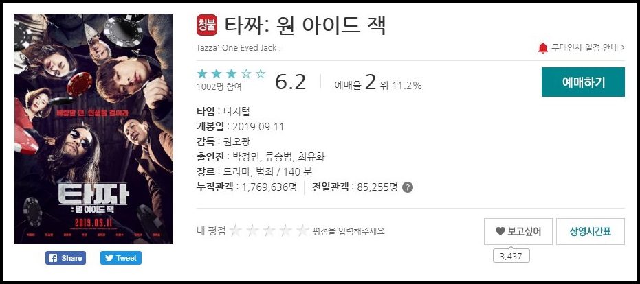 나쁜 녀석들이 아니었다면 추석 연휴 흥행 1위의 기록은 타짜 원아이디 잭의 차지가 아녔을까 생각합니다.