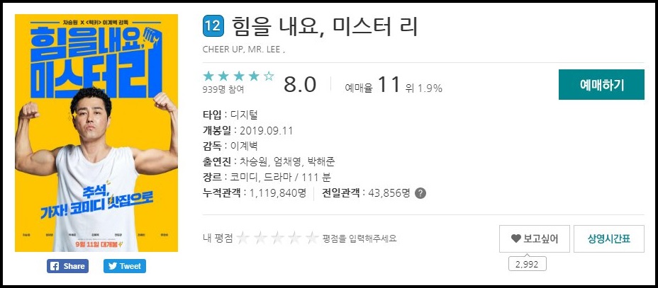 마지막으로 힘을 내요 미스터 리는 차승원 씨가 주연을 맡은 코미디물 영화입니다.