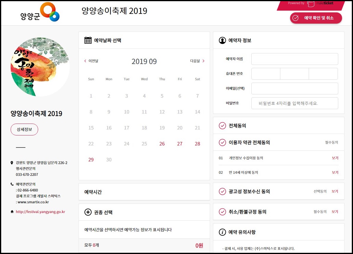 앞서 말씀드렸듯이 양양송이축제는 사전 예약으로 모든 체험을 접수 받고 있다고 합니다.