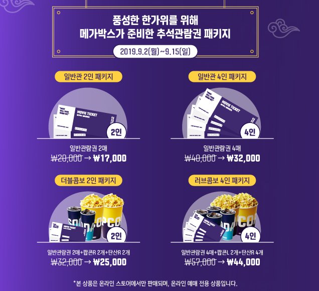 그러한 분들을 위해 메가박스 추석 관람권 패키지가 나왔습니다.