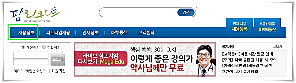 팜리크루트 는 약사들의 구인구직 정보를 담고 있는 국내 최대의 취업포털 사이트라 할 수 있다.