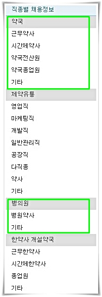 팜리크루트 구인구직의 장점은 다양한 분류별 채용 정보라 할 수 있습니다. 약국, 제약 유통, 병원 및 의원, 한약사 개설약국의 취업정보까지 담고 있습니다.