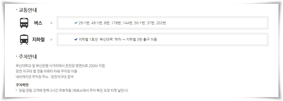 부산대역 3번 출구로 나오면 쉽게 찾아갈수 있기 때문에 자가용으로 방문하시는 것보다는 대중교통을 이용하시는 것이 훨씬 더 좋다고 할 수 있습니다.