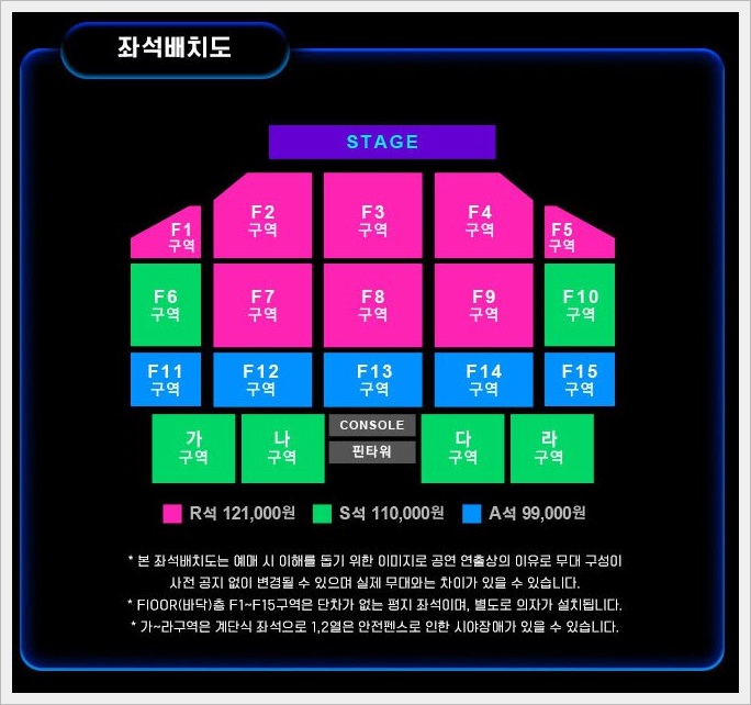 콘서트 관람시 아무래도 앞좌석이 좋을 수가 있는 만큼 잘 참고하시기 바랍니다.
