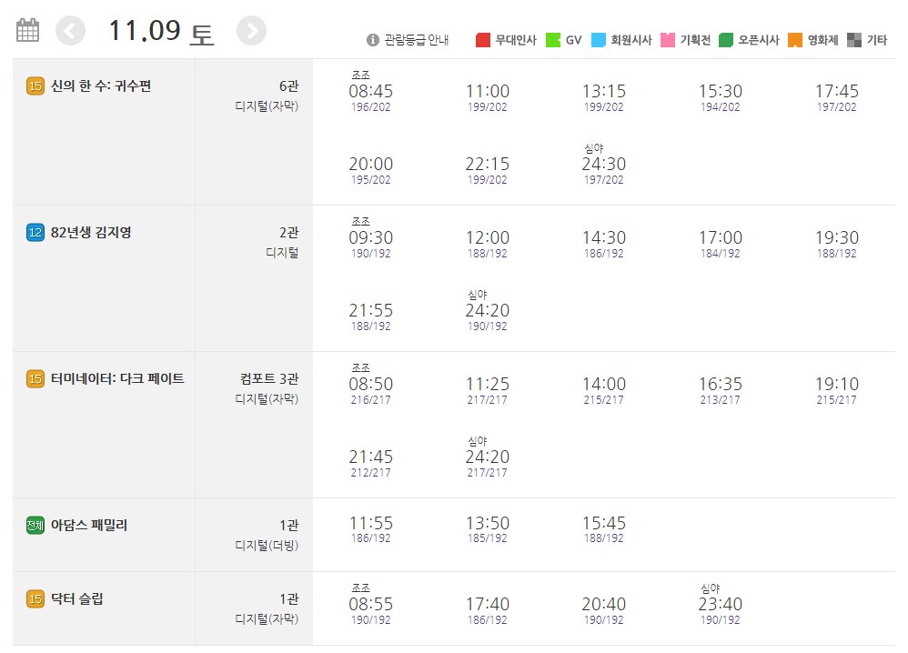 대구 메가박스 칠성점 상영시간표 , 할인카드 및 예매 순위안내