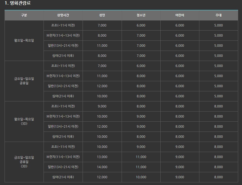 메가박스 영화관람요금은 전국의 지점마다 조금씩 차이가 있습니다.