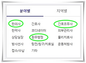 홈페이지를 둘러보면 구인구직 직종도 정말 다양하다는 것을 알 수 있는데요. 한의사 취업은 물론 간호사, 간호조무사, 한약사, 원무행정, 물리치료사, 탕전/침구/치료실 등 한의원에서 종사하는 다양한 직업군을 소개하고 있습니다.